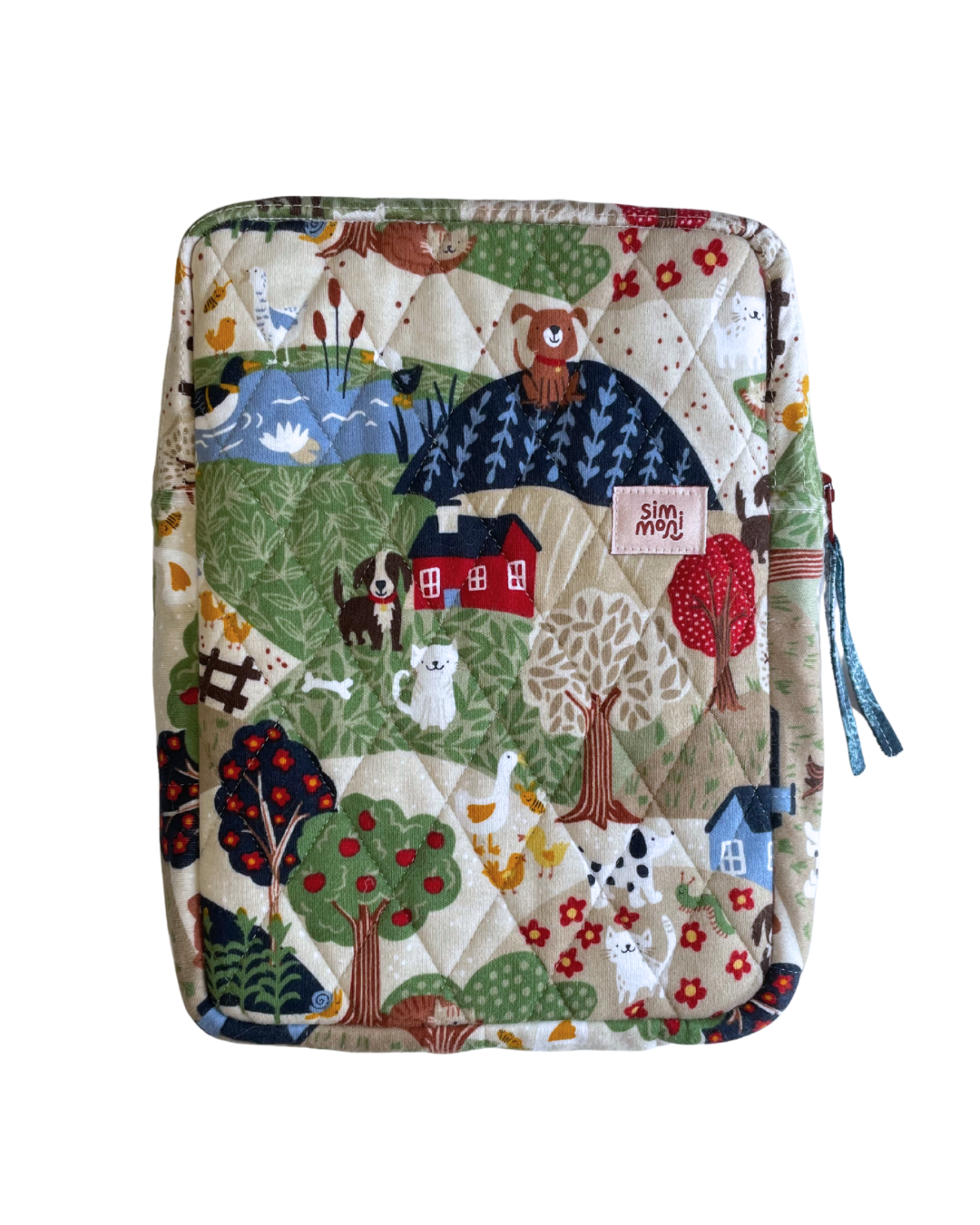 Protect your beloved books with this handmade At the Farm Reading Book Sleeve. Made with a quilted design, this sleeve adds a touch of style while ensuring your books stay safe. A must-have accessory for any book lover.